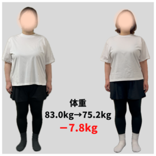 トレーニング開始時 → 99日目 体重83.0キロ → 75.2キロ(-7.8キロ)体脂肪率46.1% → 41.6%(-4.5%)ウエスト98cm → 88cm(-10cm) Q なぜトレーニングを始めようと思いましたか?20代の頃か...